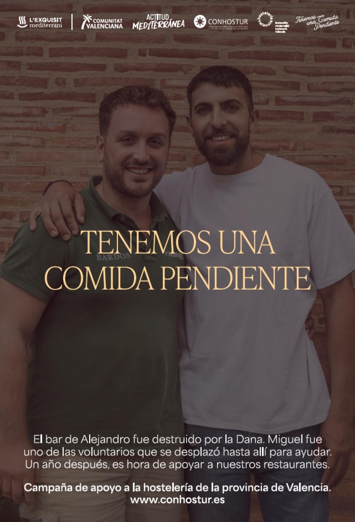 "TENEMOS UNA COMIDA PENDIENTE" es una campaña impulsada por CONHOSTUR, Turisme Comunitat Valenciana y Hostelería Valencia para apoyar a la hostelería de la provincia de Valencia afectada por la DANA.